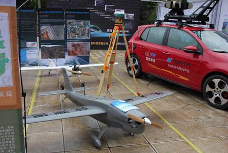 图1 系列活动展示的先进测量工具(GPS、移动测量系统和无人机)