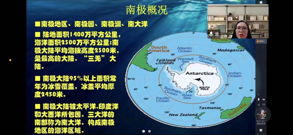 2023年5月9日,自然资源部第二海洋研究所副研究员唐丽梅博士,通过线上方式为我校资源勘查工程、地质工程专业2022级120余位学生讲授了部分《地质学基础》课程内容,授课题目为“极端地球环境下的科学探索—从深海到南极”。